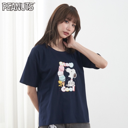 史努比躺甜甜圈短袖圓領短T(男女共版)