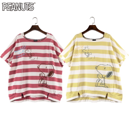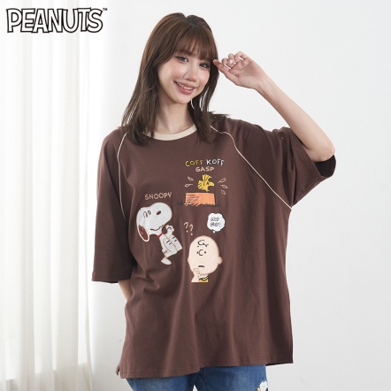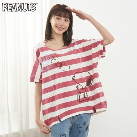 史努比條紋後開岔寬版短袖T恤(咖啡)