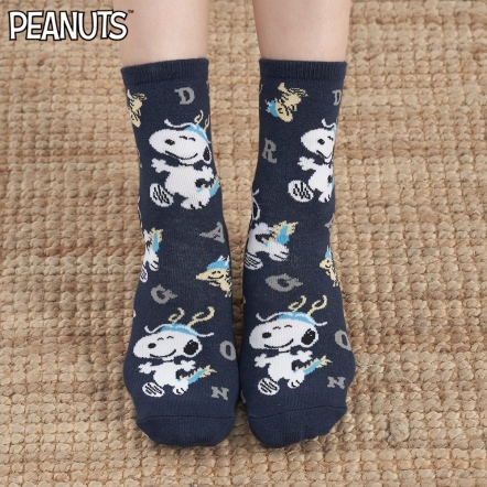 史努比JOE COOL滿版中筒襪(深藍/深灰/黃)