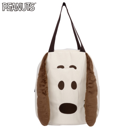 史努比大臉麻布拼帆布購物袋(附吊飾)