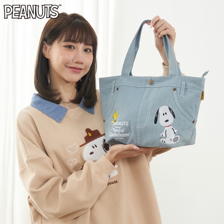 史努比與兄弟麻布拼帆布購物袋(附吊飾)
