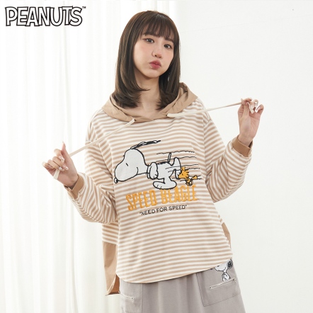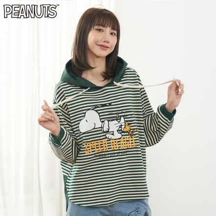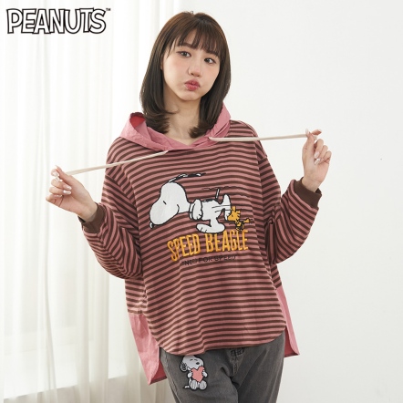 史努比胡士托不准動寬版連帽毛衣(綠/咖啡)