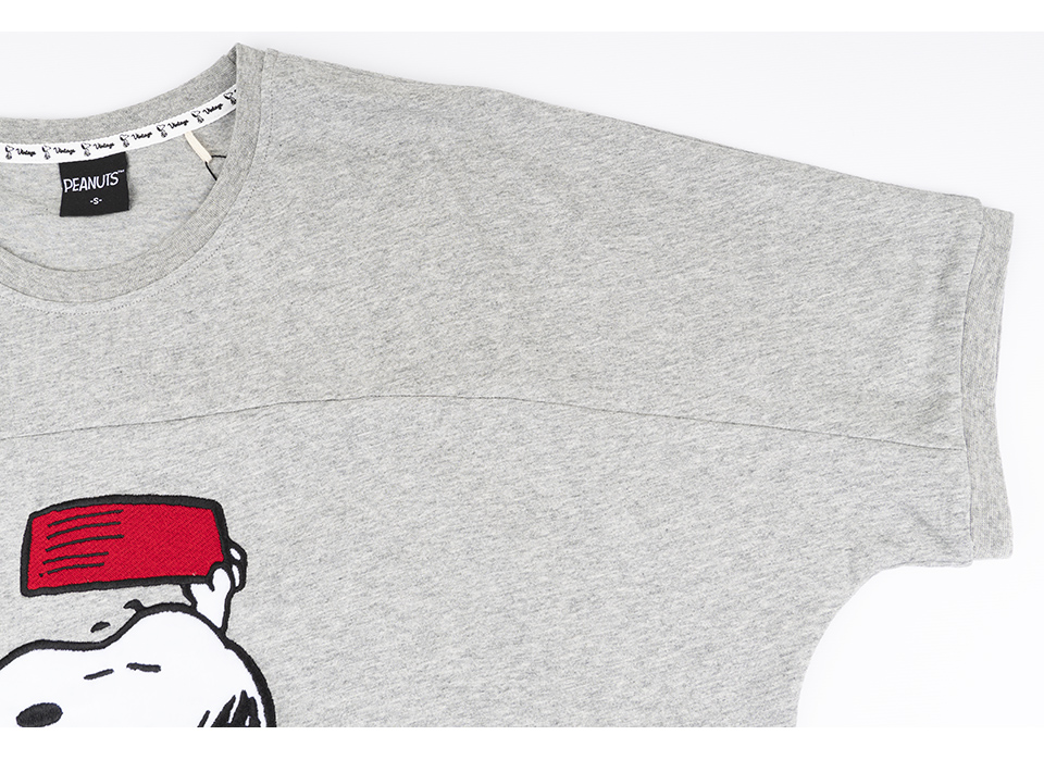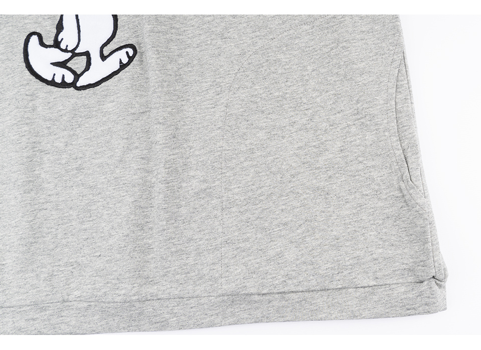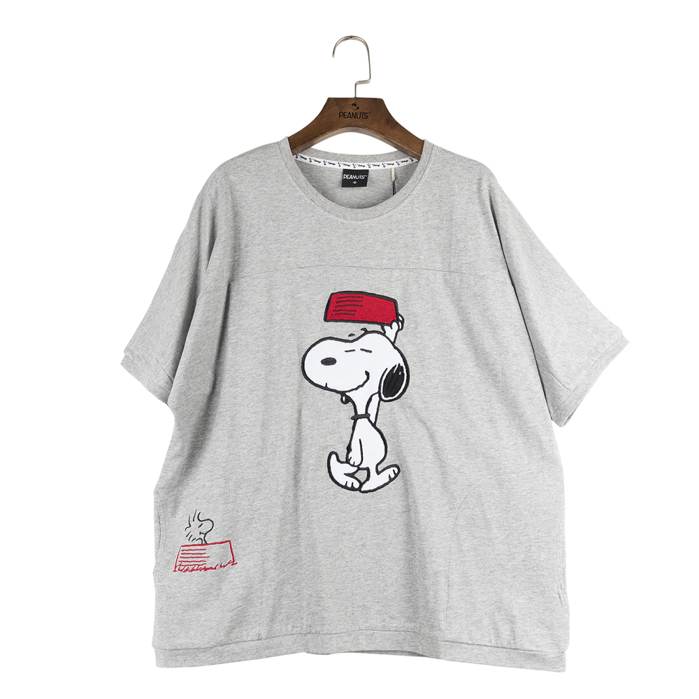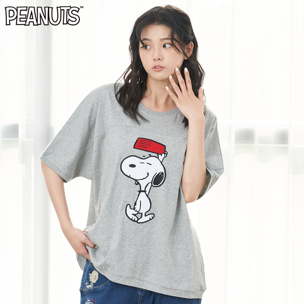 史努比拿狗碗側口袋寬版短袖T恤(灰)