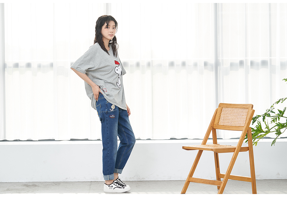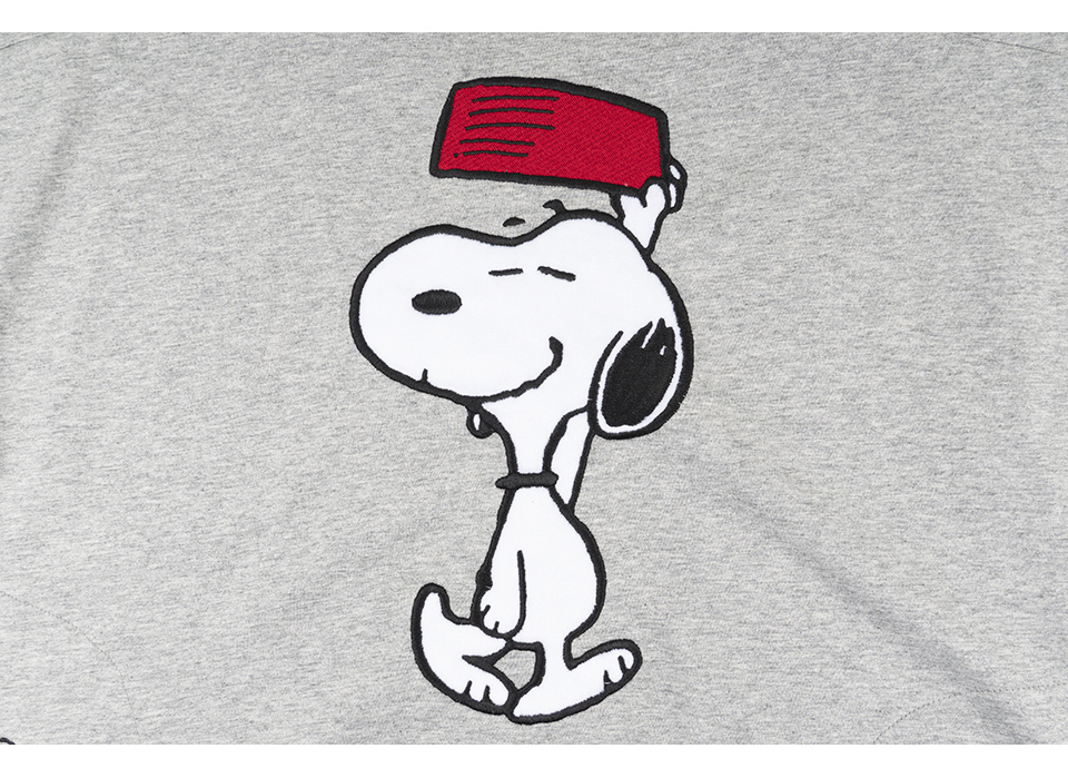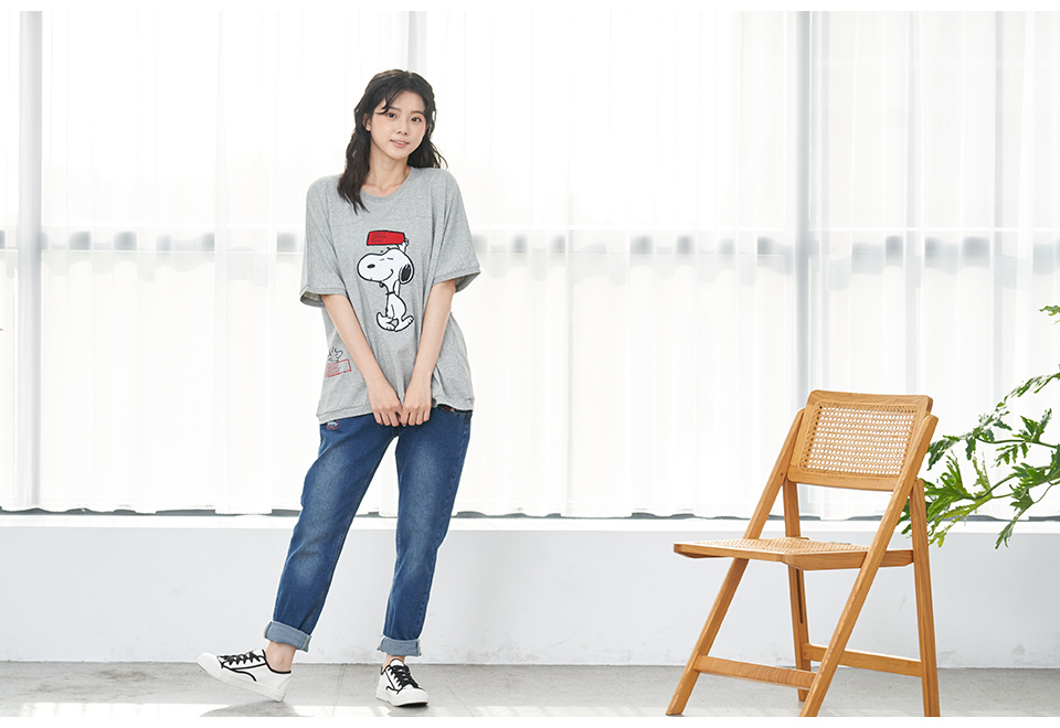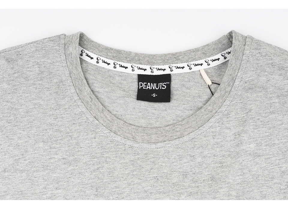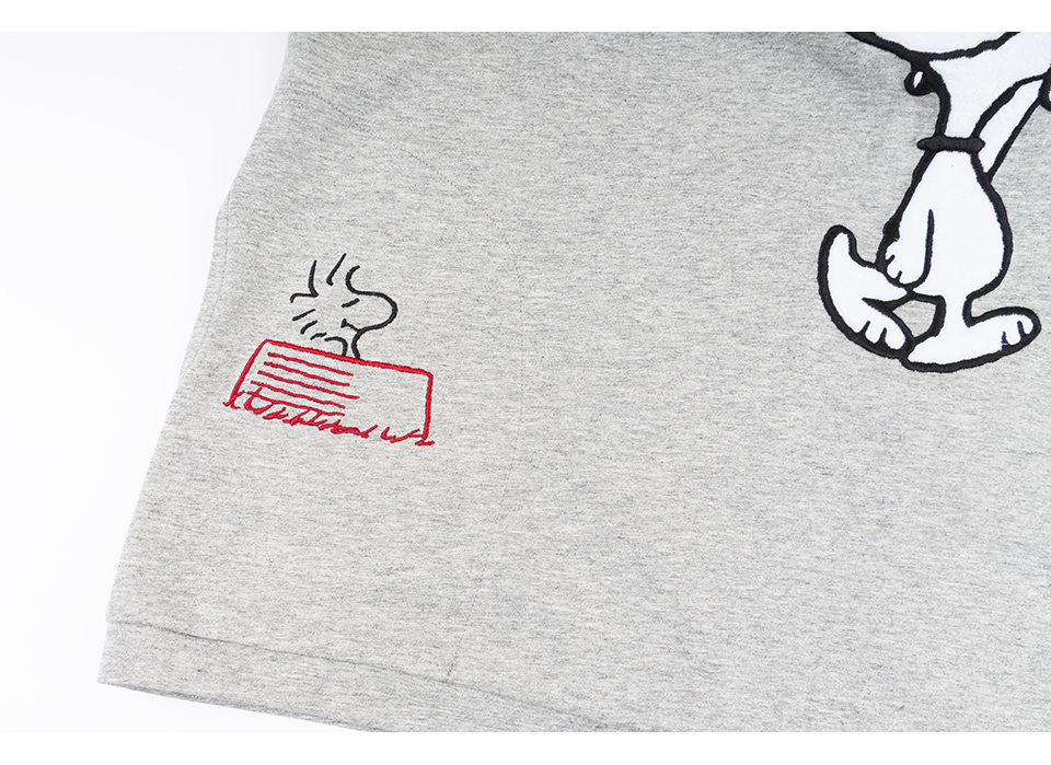 史努比拿狗碗側口袋寬版短袖T恤(灰)